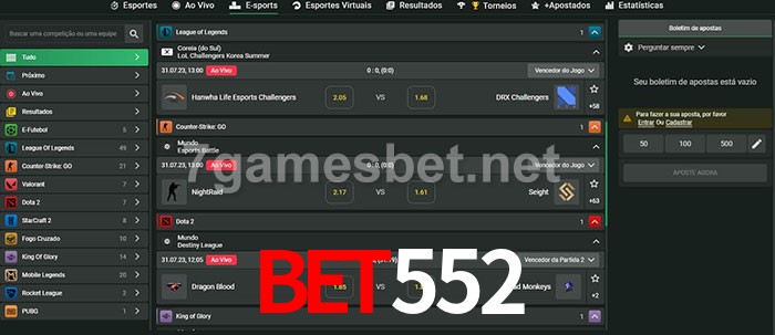 O Bet552 oferece uma grande seleção de opções de apostas em e-sports com probabilidades competitivas